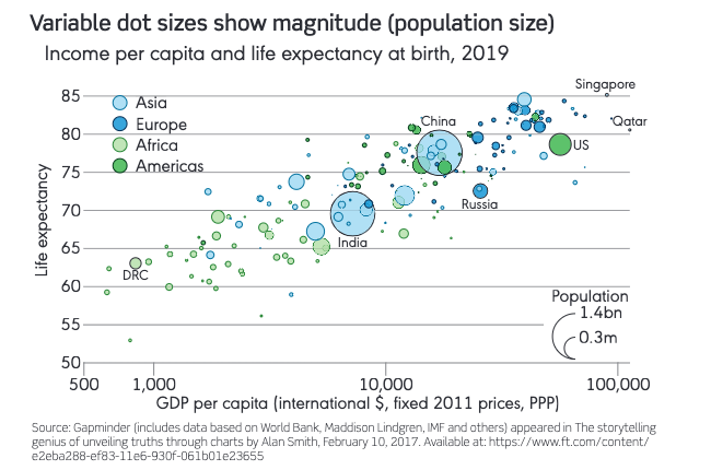 - 例如,中國和印度的氣泡非常大,因為這兩個國家擁有全球最多的人口。