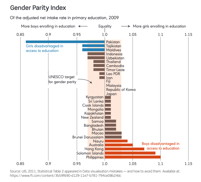 - 1.00:表示性別平等,即男孩和女孩的入學人數相等。