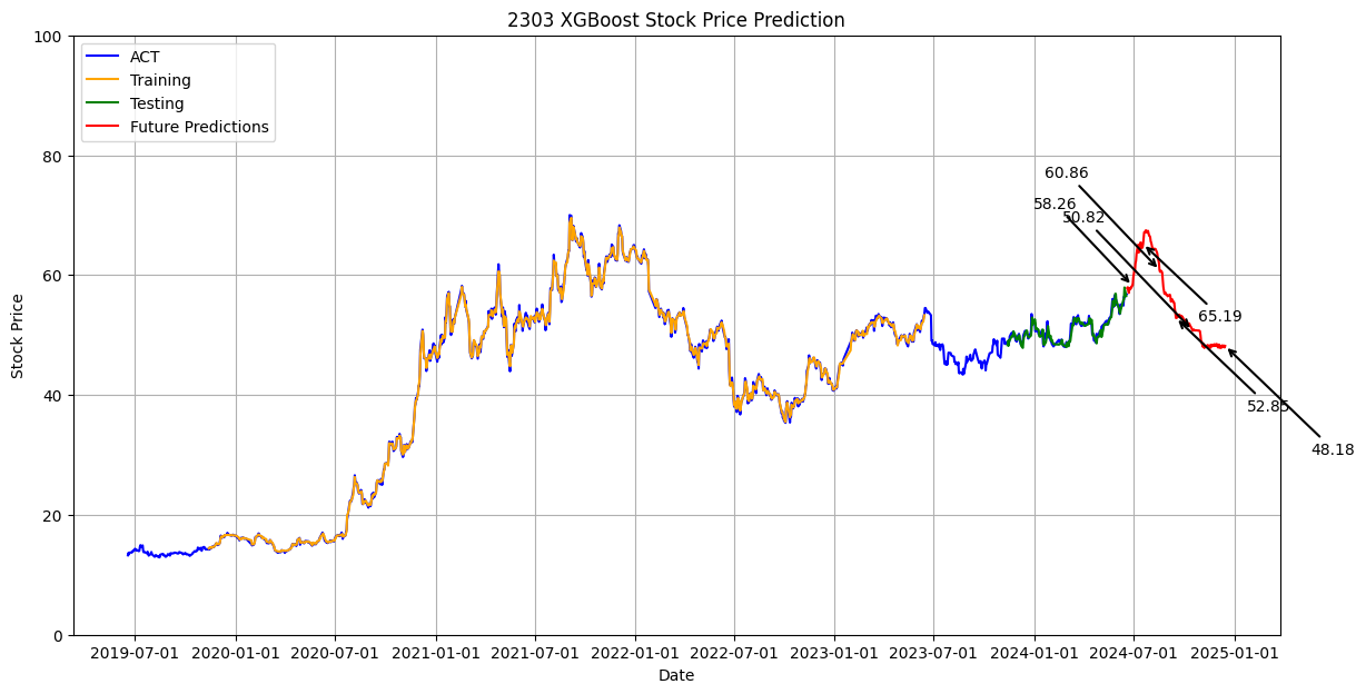 plt.title('2303 XGBoost Stock Price Prediction')