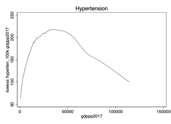 twoway lowess hypertension gdppp2017