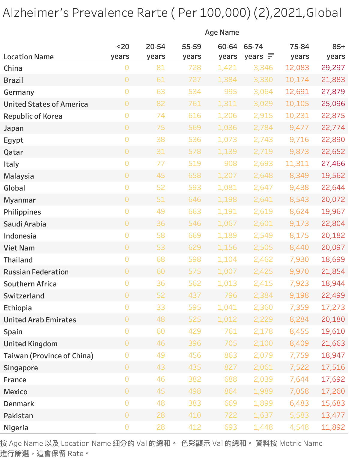 2021 年全球阿茲海默症人口統計