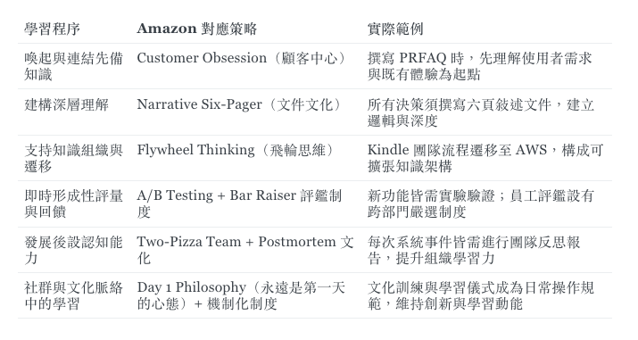 六、Amazon 策略與六個學習程序的對應