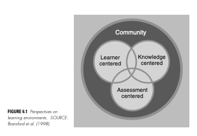 圖 6.1 | 理想學習環境的四大支柱 | 學習者、知識、評量與社群的平衡共構 |