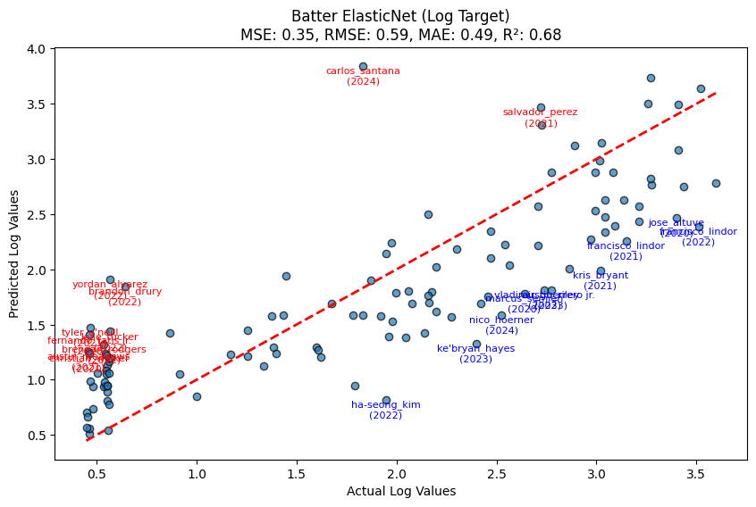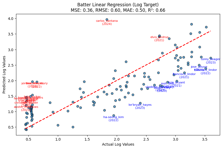 - 探討進階棒球數據(如xwOBA、xSLG、WAR等)在薪資模型中的解釋力。