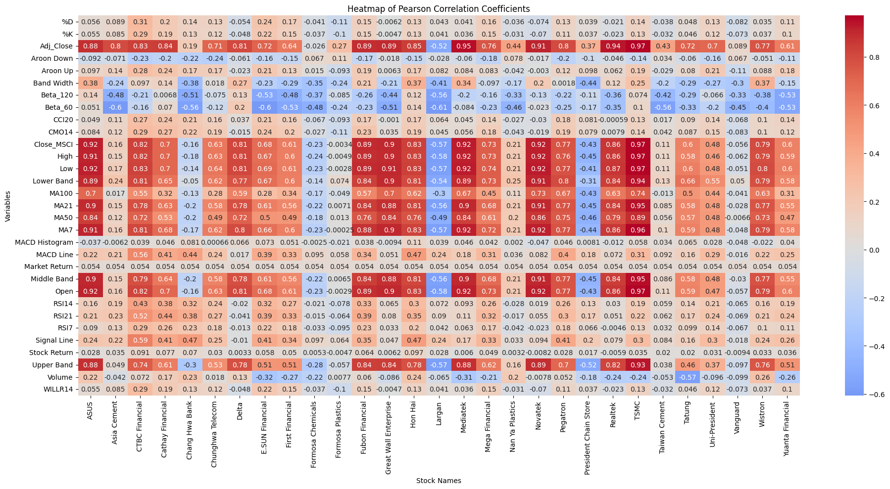 correlation_pivot = correlation_df.pivot_table(index='Variable', columns='Stock Name', values='Pearson Correlation')