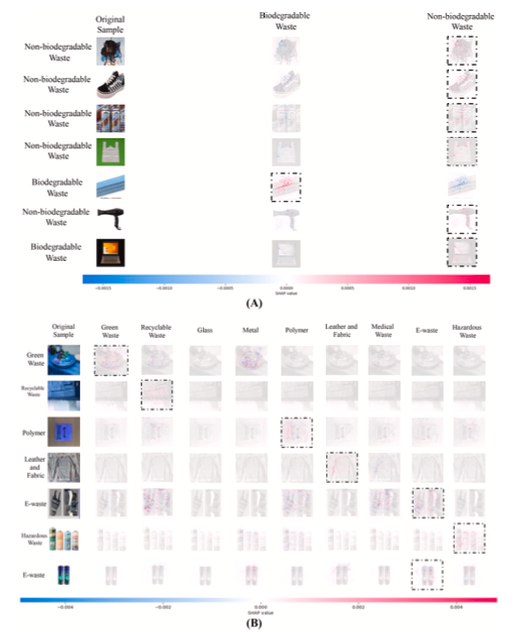 - 研究引入 Grad-CAM、SHAP、Guided Grad-CAM 等方法,提高模型決策透明度,幫助分析垃圾分類的影像特徵,增強工業應用的可行性。