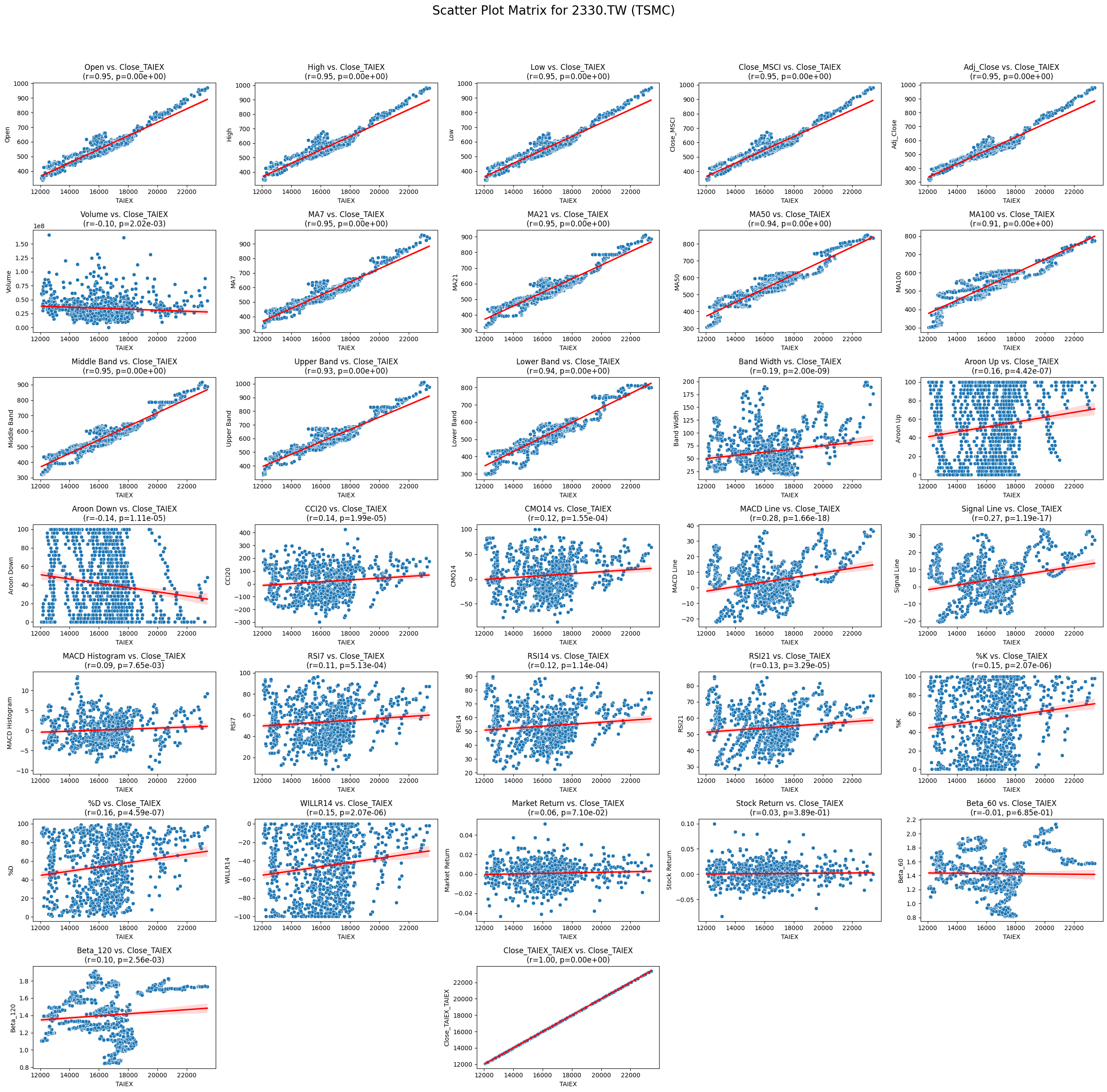 Pearson Correlation with Close_TAIEX for 2330.TW (TSMC)