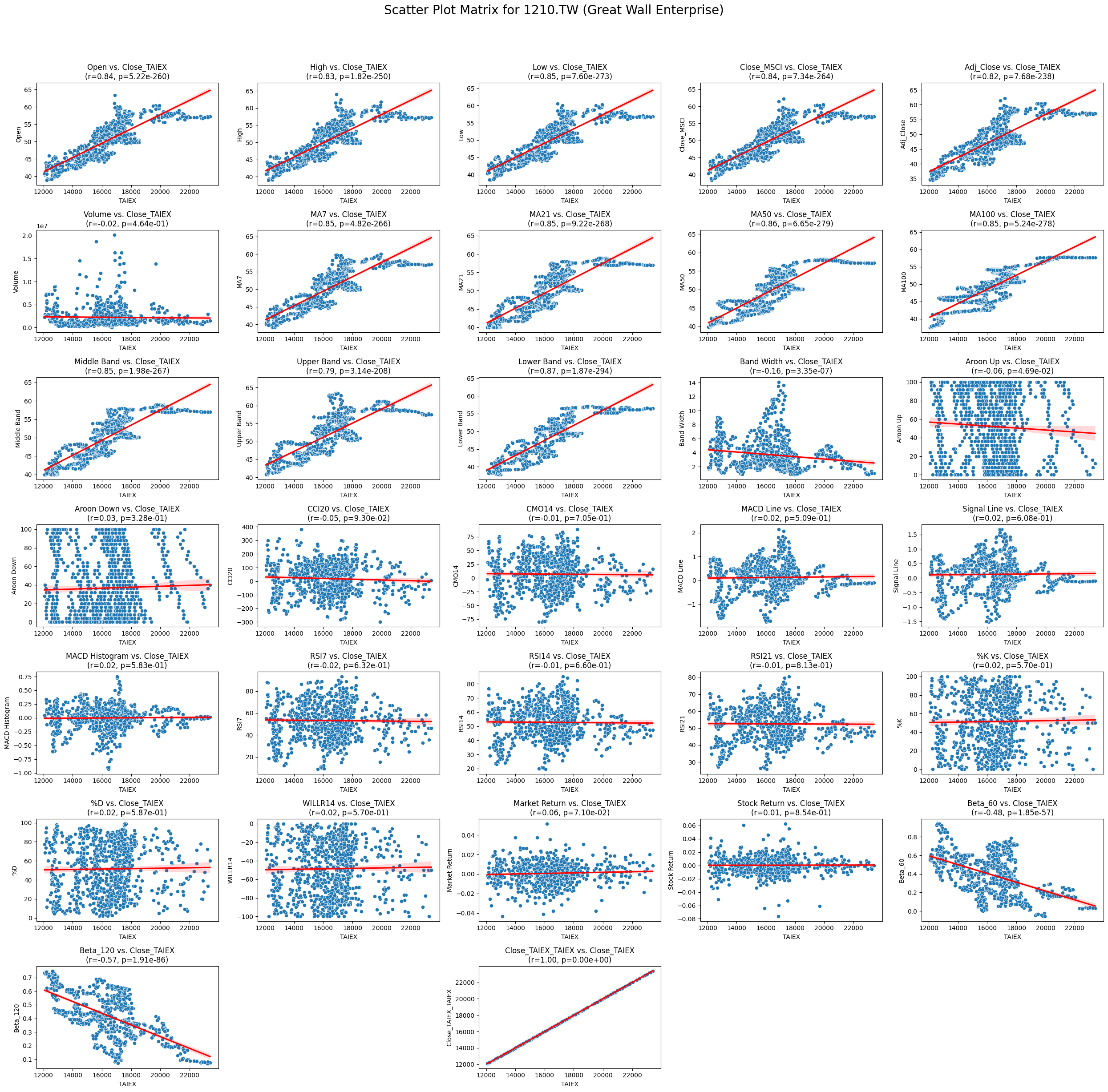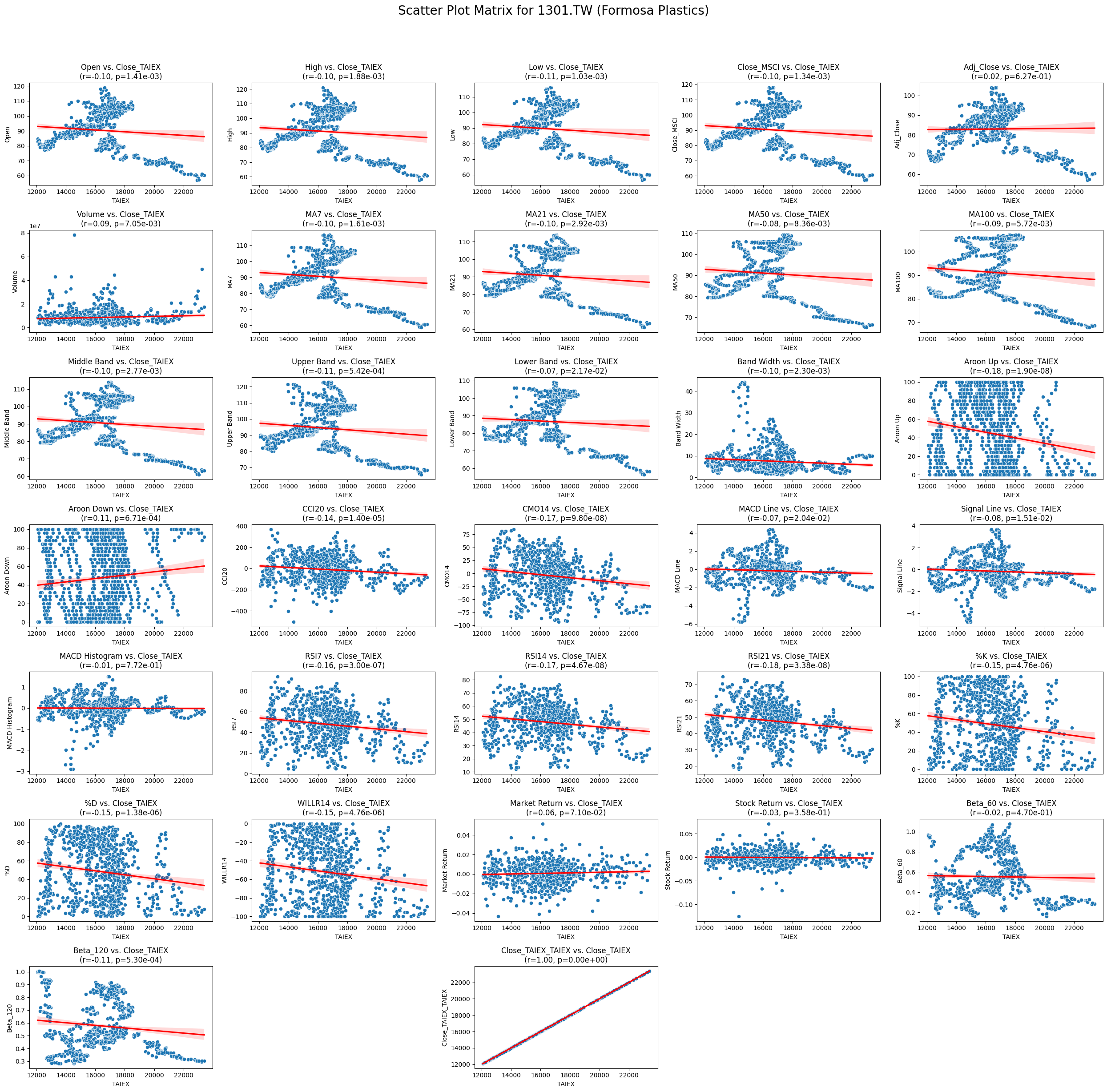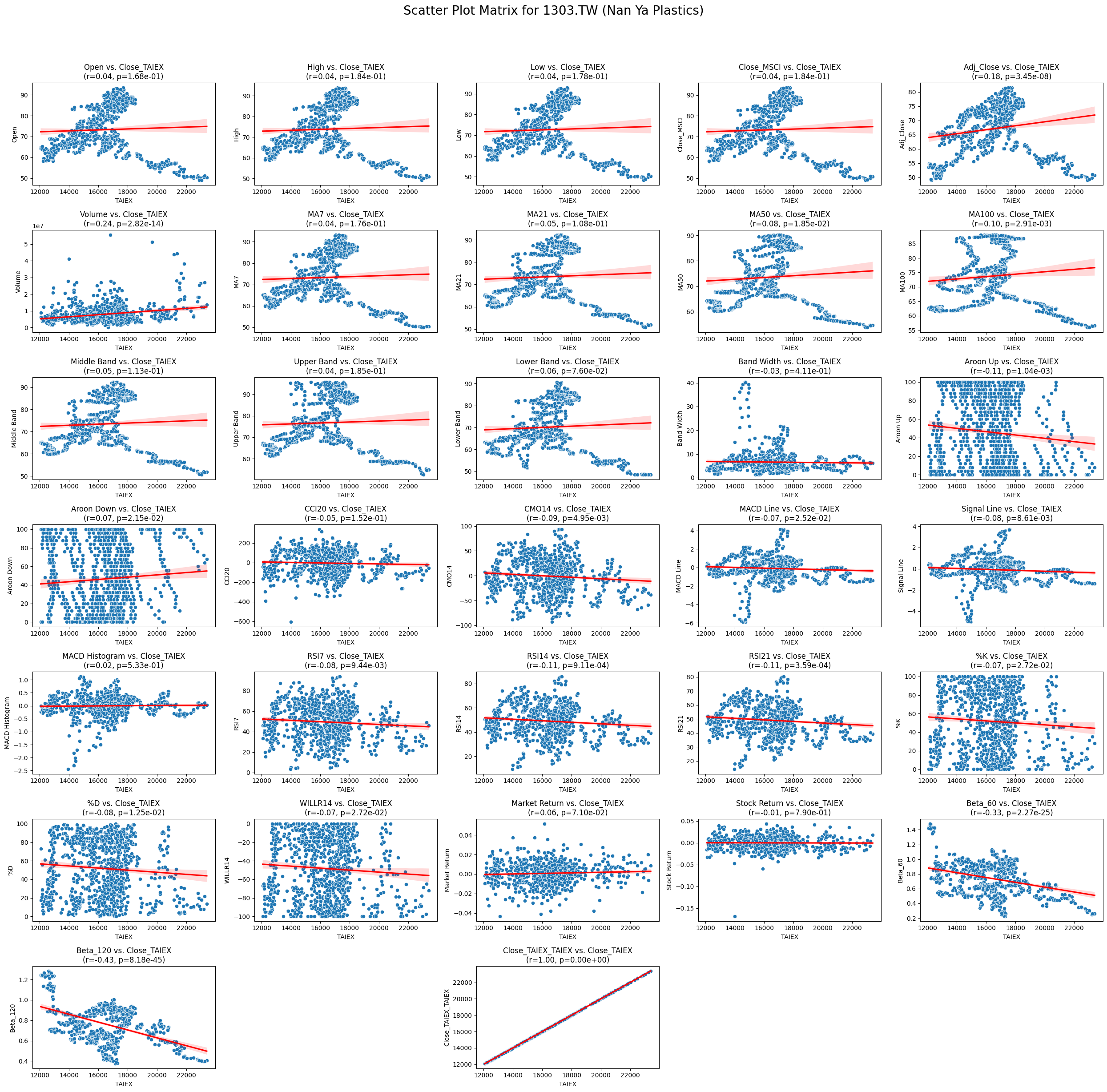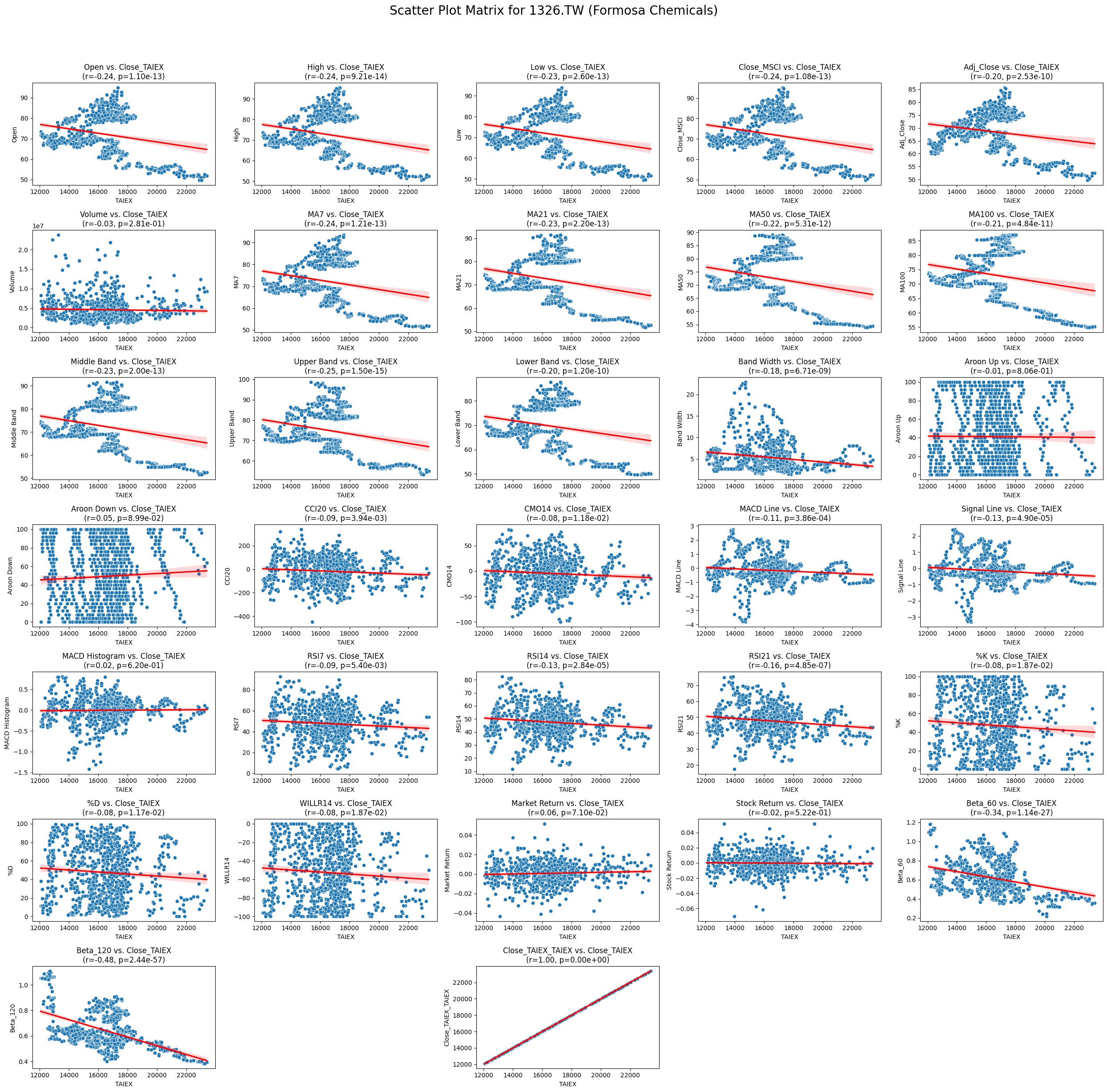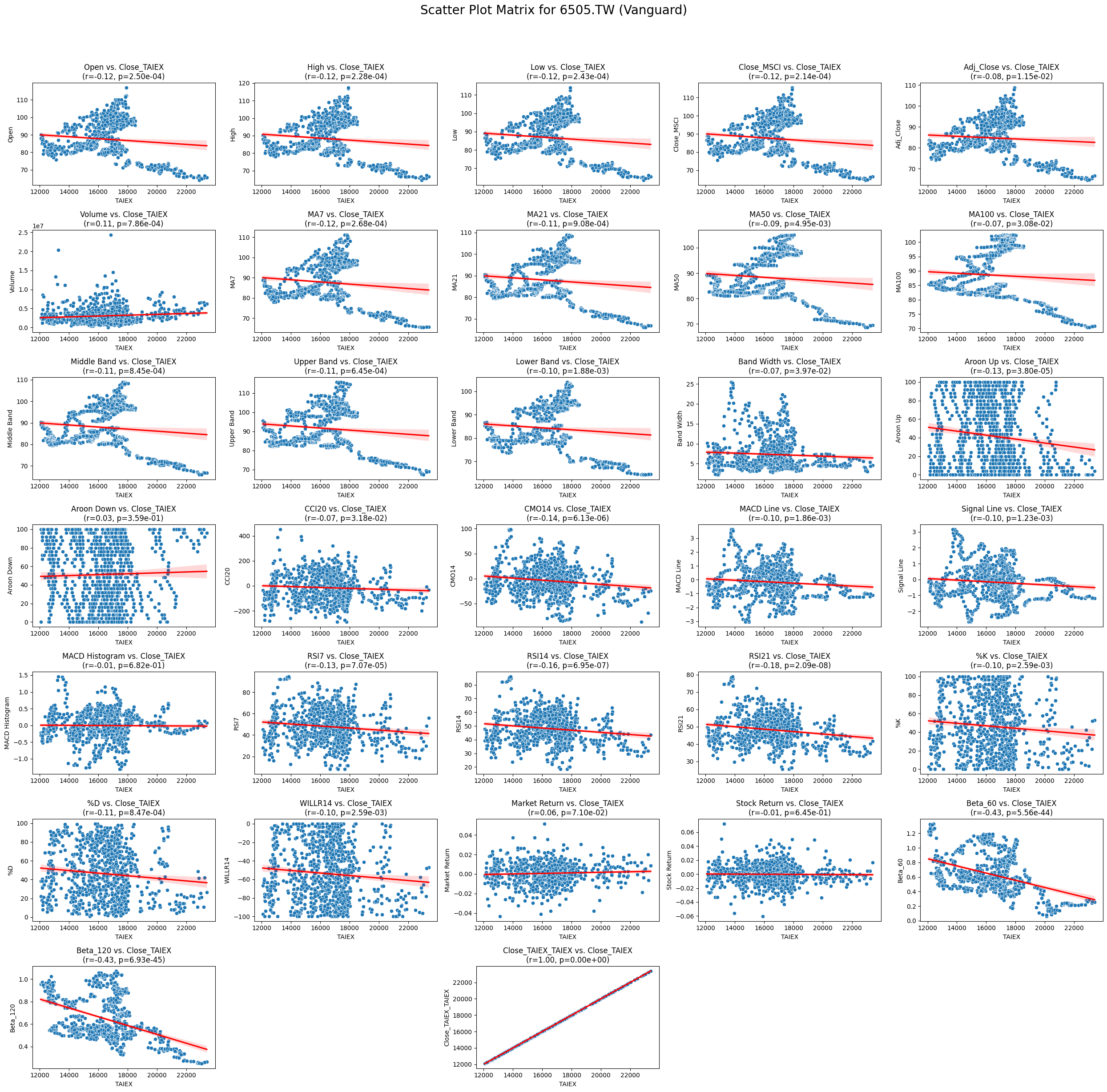 Pearson Correlation with Close_TAIEX for 6505.TW (Vanguard)