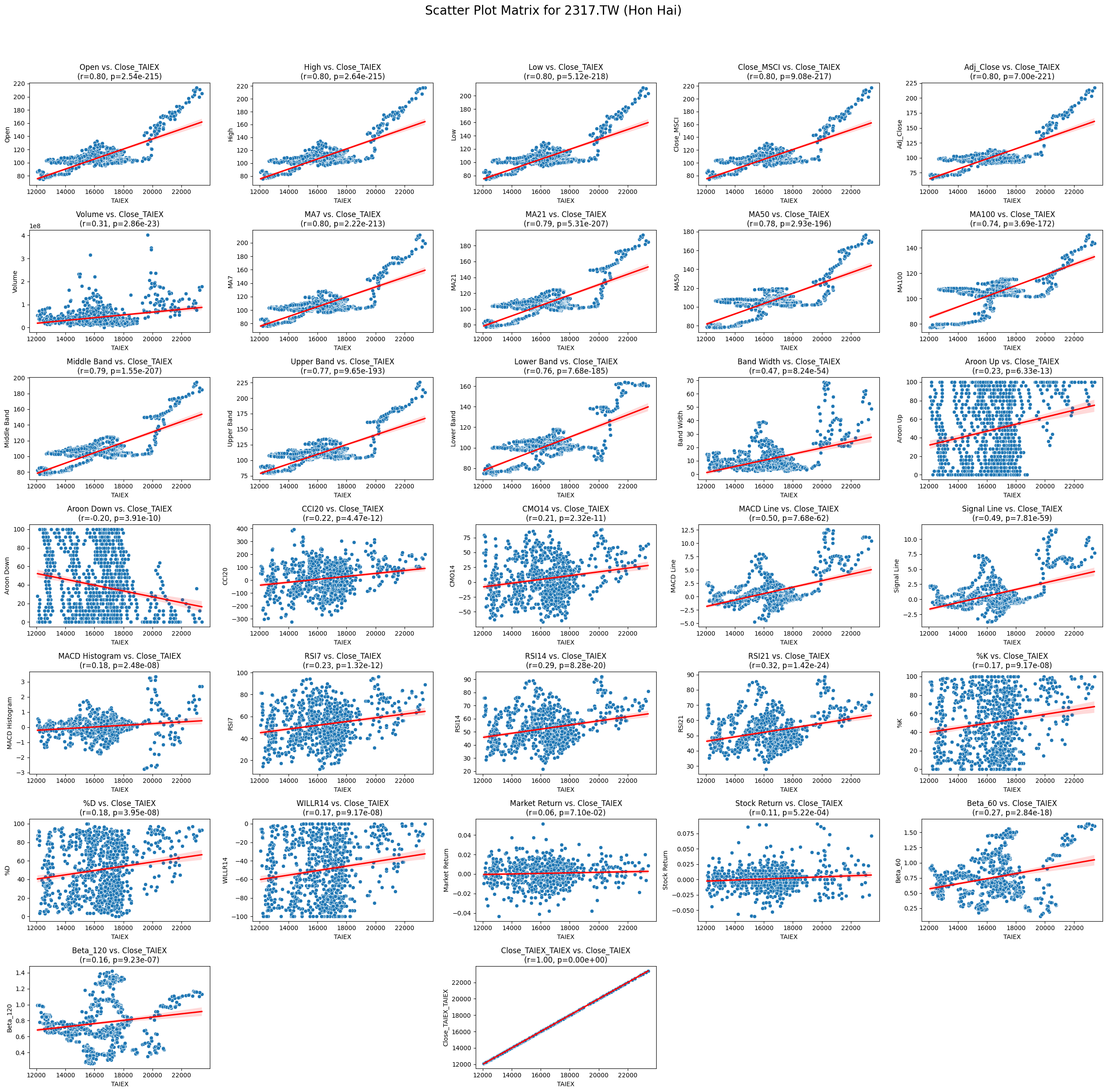 Pearson Correlation with Close_TAIEX for 2317.TW (Hon Hai)
