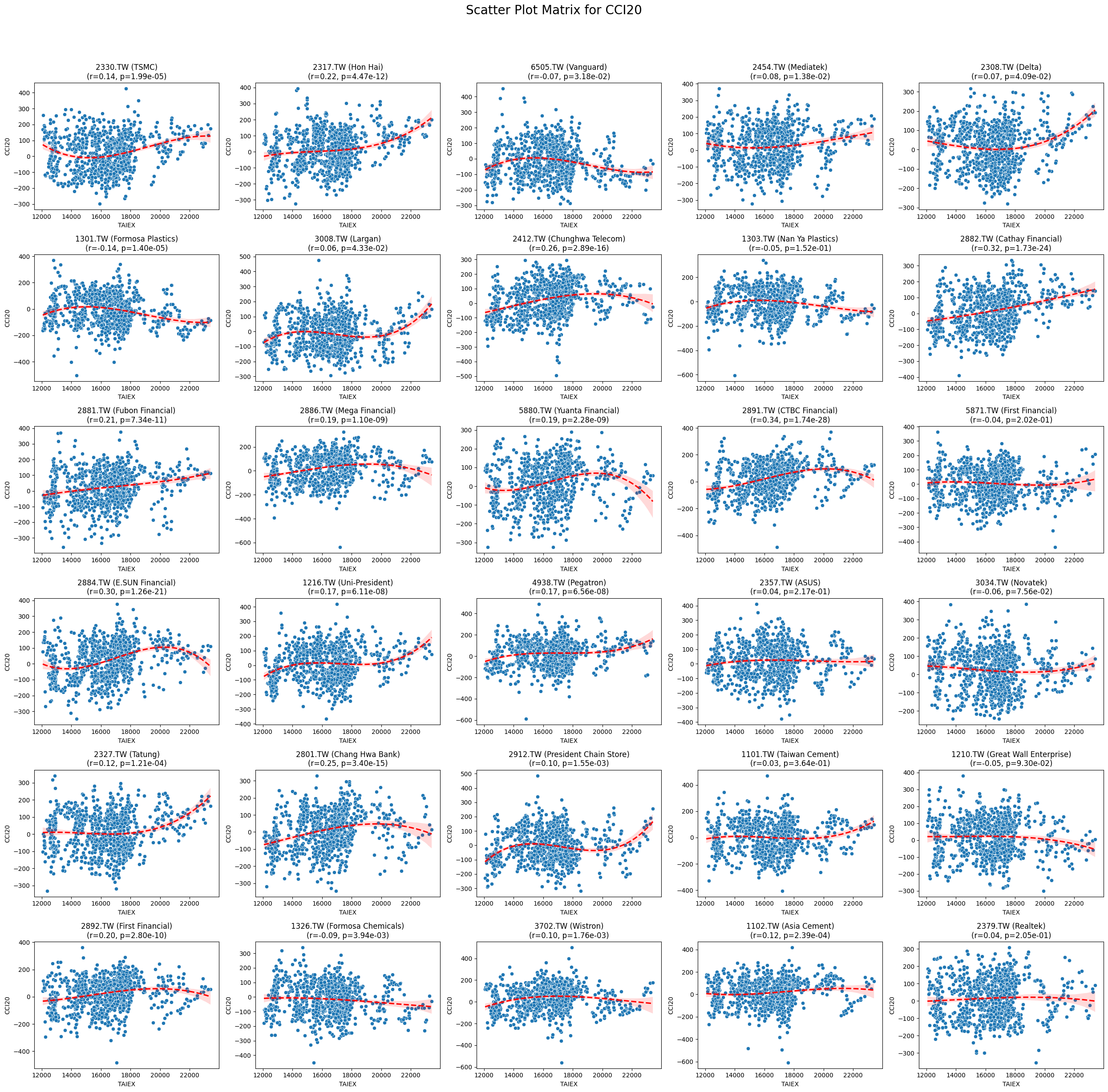 plt.title(f'{stock_code} ({stock_name})\n(r={correlation:.2f}, p={p_value:.2e})')