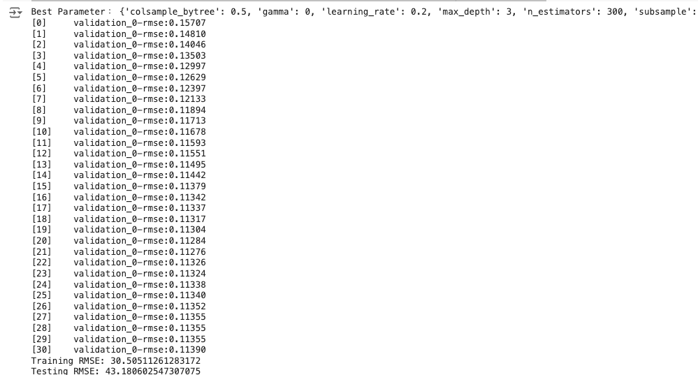 xg_reg_best = xgb.XGBRegressor(**best_params, early_stopping_rounds=10, eval_metric='rmse')