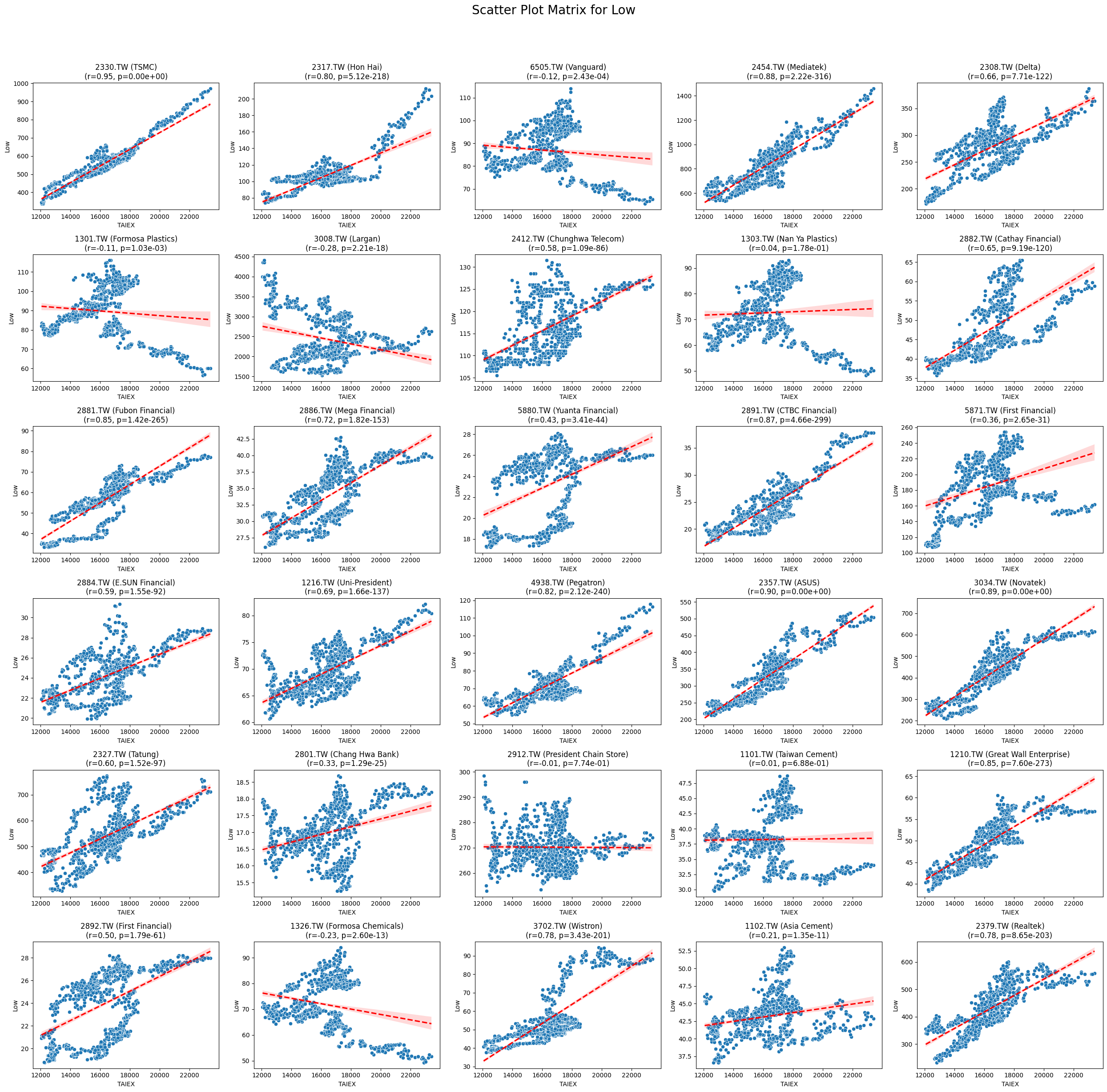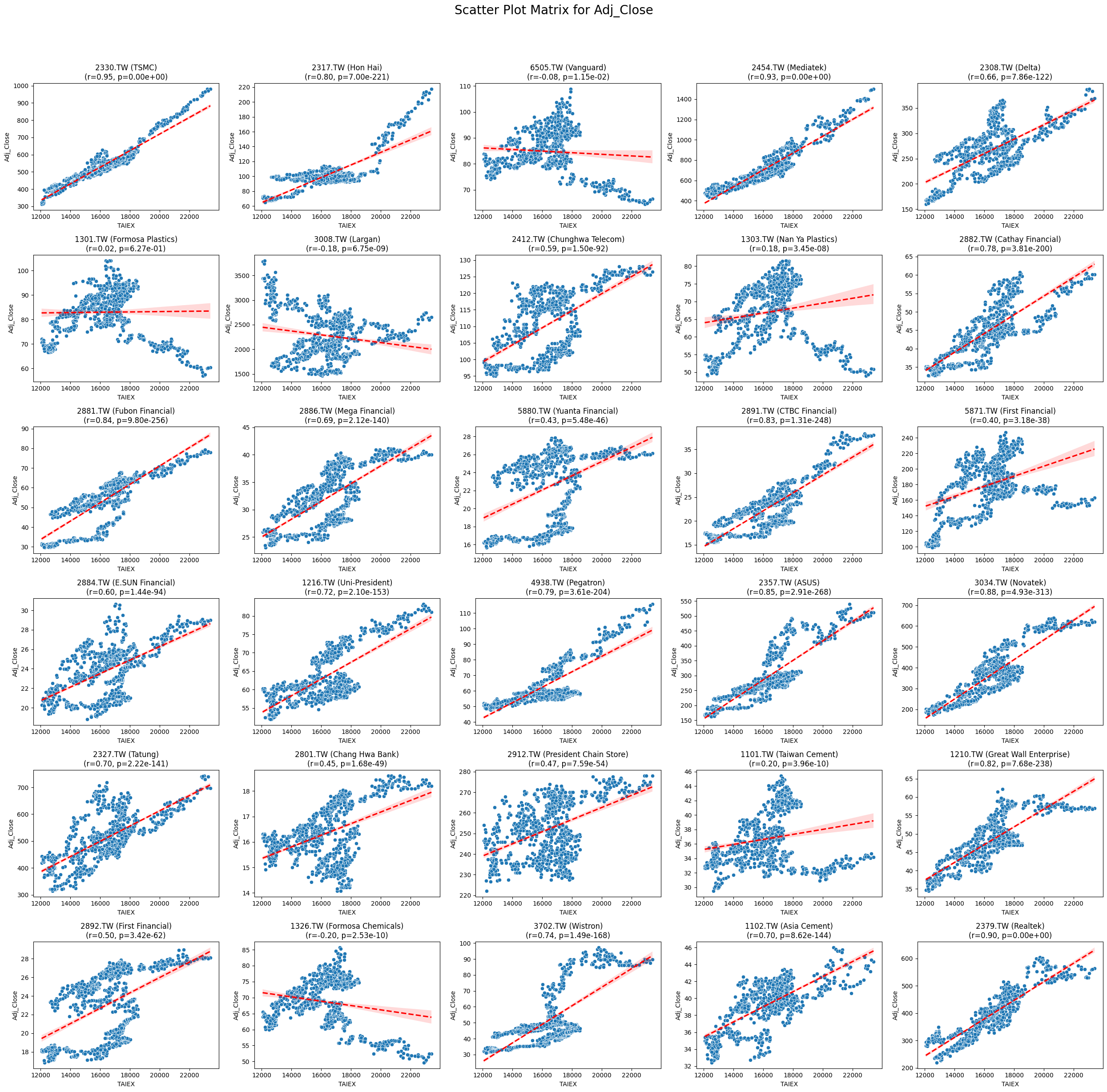 plt.title(f'{stock_code} ({stock_name})\n(r={correlation:.2f}, p={p_value:.2e})')