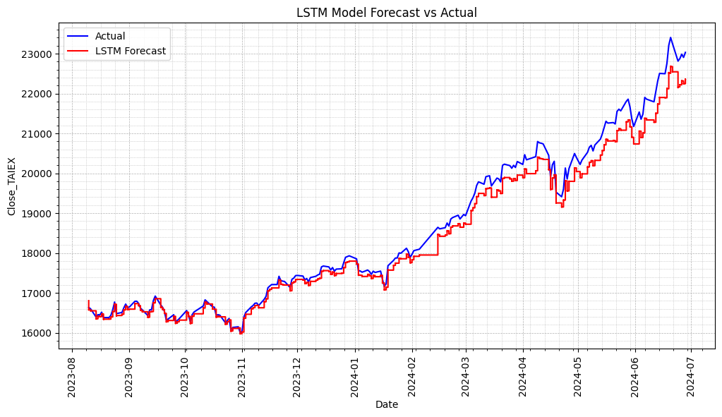 plt.title('LSTM Model Forecast vs Actual')