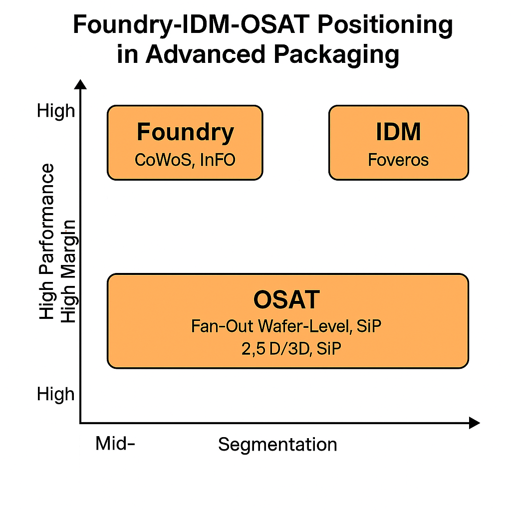Meanwhile, foundries like TSMC (CoWoS, InFO) and IDMs like Intel (Foveros) are integrating packaging into their offerings, leading to a clear bifurcation: