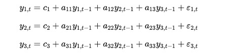 在 VAR(1) 模型中,每個變量的當前值是其自身以及其他變量前一天值的線性組合,例如: