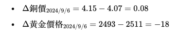 - 銅價的變化量:Δ銅價