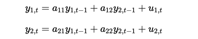 y_{1,t} = a_{11} y_{1,t-1} + a_{12} y_{2,t-1} + u_{1,t}