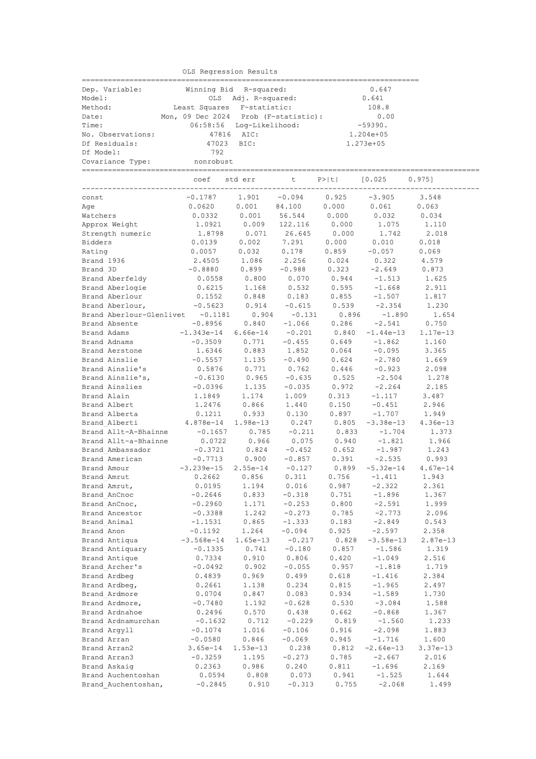 Brand_Balblair, 0.0916 1.214 0.075 0.940 -2.288 2.471